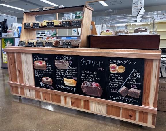 浜松市の「シフォンケーキ 絹」さんより、販売用の商品棚とメニュー看板の製作をご依頼いただきました。